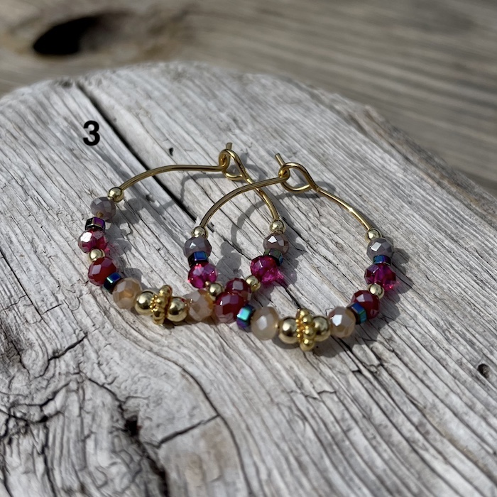 Boucles d’oreilles créoles en Argent925 plaquées or agrémentées de perles de cristal et de perles en Argent925 plaquées or.