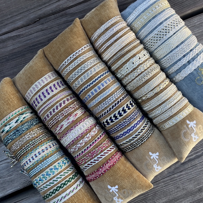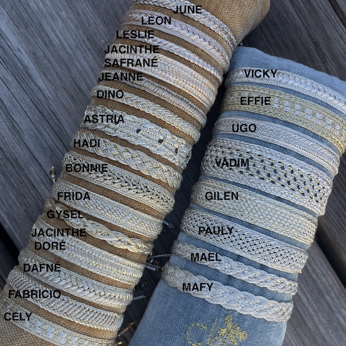 Le tissage est exécuté artisanalement et le montage du bracelet est travaillé avec des métaux précieux et des perles en Argent 925 plaquées Or pour une résistance optimale et des finitions délicates grâce aux perles qui soulignent les nuances du tissage.